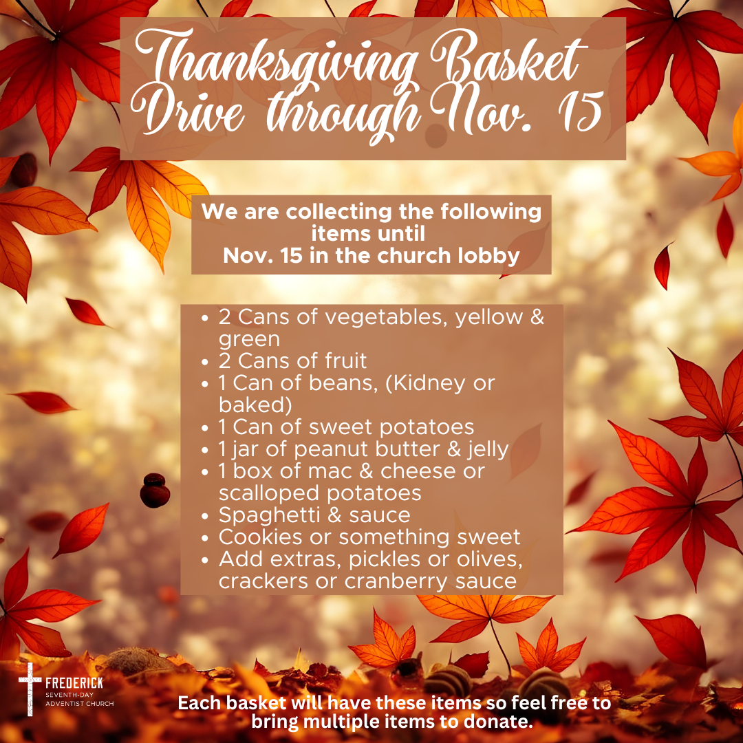 Now through November 15, 2025 - Thansgiving Basket Food Drive